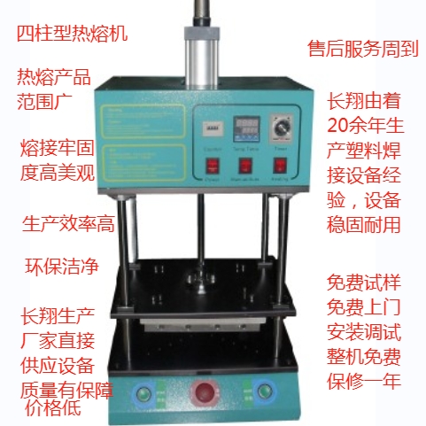 中型塑料熱熔機(jī): 生產(chǎn)廠(chǎng)家長(zhǎng)翔,長(zhǎng)翔是一家生產(chǎn)各種塑料焊接設(shè)備的工廠(chǎng),本廠(chǎng)生產(chǎn)的其他設(shè)備還有例如:塑料旋熔機(jī)、塑料熱板焊接機(jī)、超音波焊接機(jī)、超聲波焊接機(jī)等。